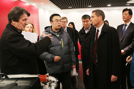 12月5日下午,德意志共和国驻华特命全权大使柯慕贤一行参观访问中国重汽。中国重汽(香港)有限公司执行董事王善坡、副总裁努林格陪同柯慕贤一行参观了济南动力部产品展厅、曼发动机生产线和济南商用车公司产品展厅,并与之进行了座谈。